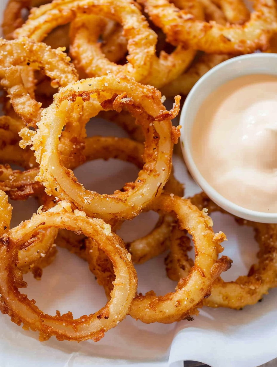 Crispy Onion Rings with Awesome Blossom Dipping Sauce