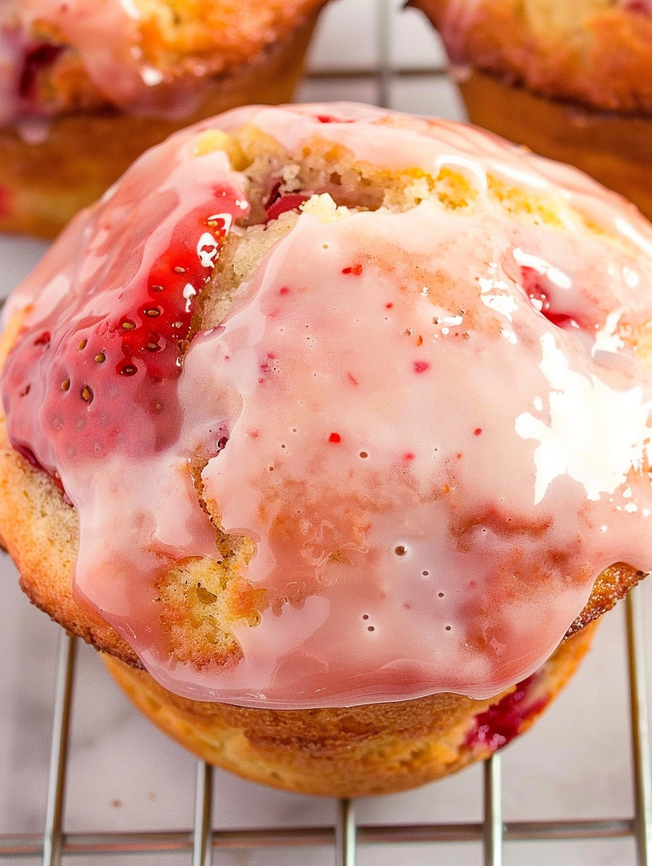 Buttery Strawberry Muffins with Strawberry Glaze