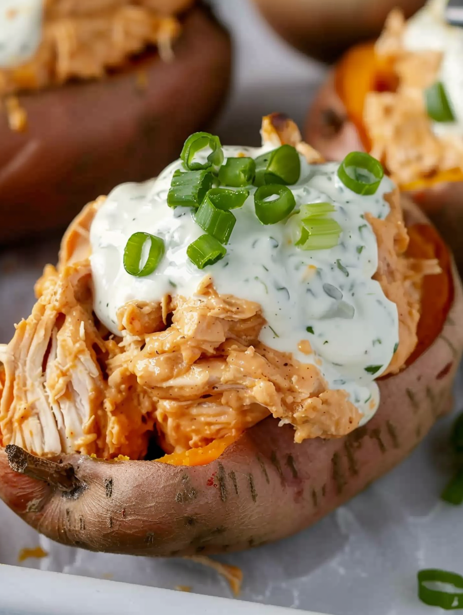 Stuffed Sweet Potatoes with Buffalo Chicken & Ranch